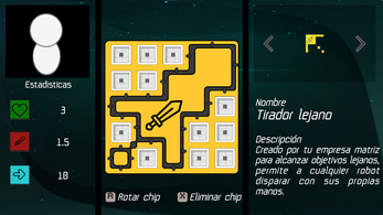 Explora una mazmorra desconocida llena de robots corruptos los cuales fallaron en su mision, encuentra materiales y vuelvete mas fuerte construyendo chips